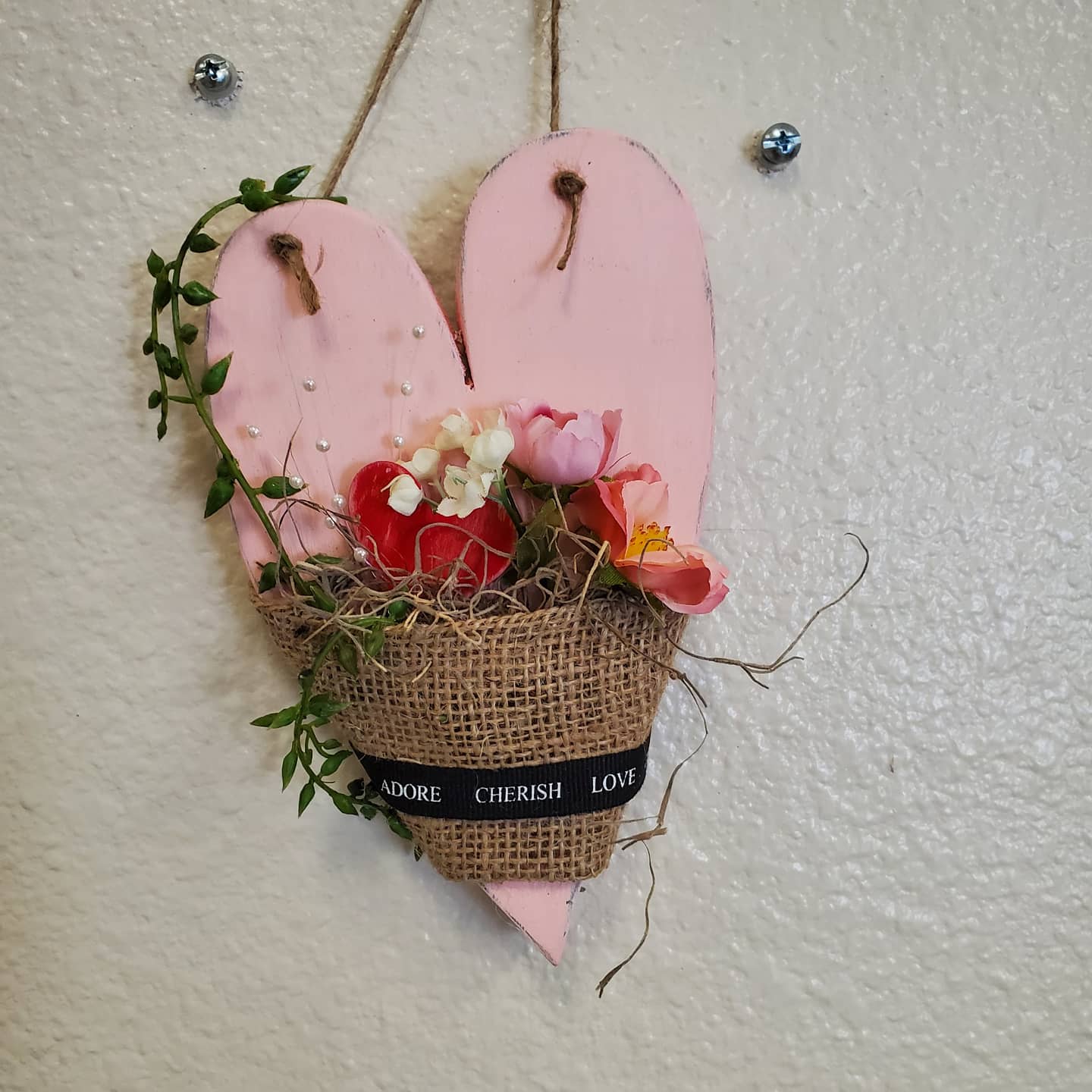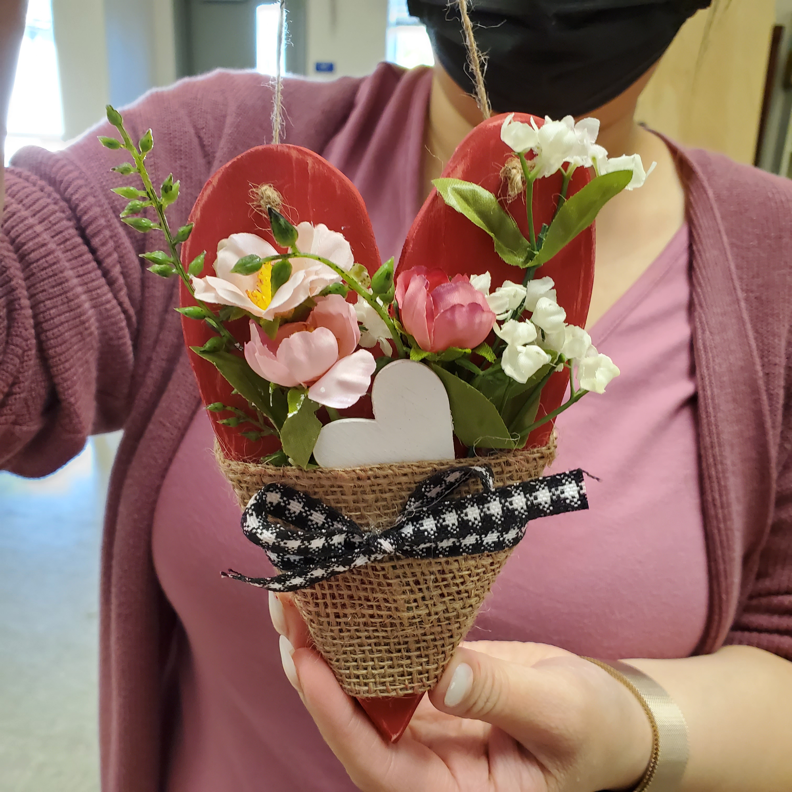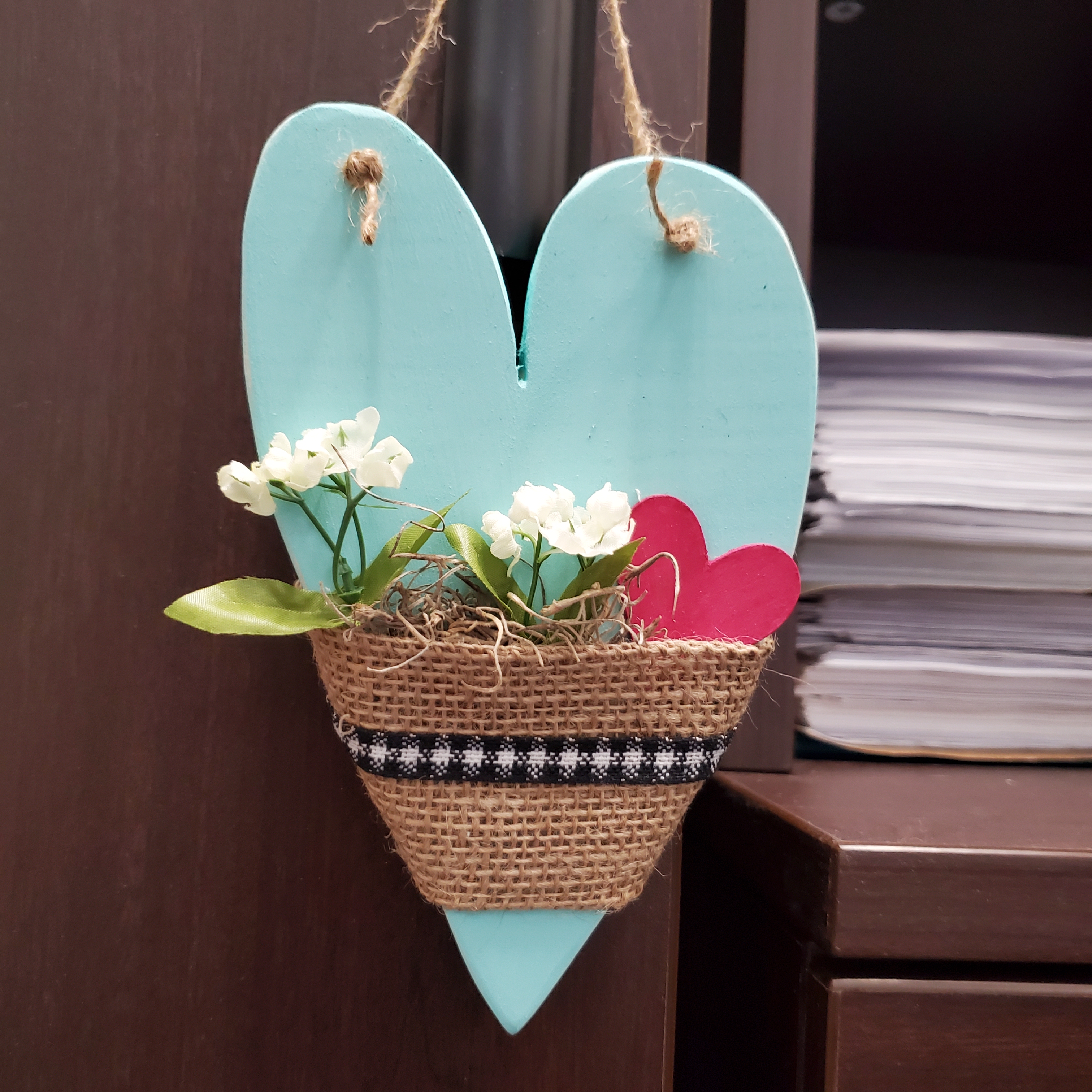 Yesterday a small group of co-workers got together for another crafting session that I called “Art Therapy with Amber”. Gearing up for Valentine’s Day I chose a boho style, rustic, wood heart project.